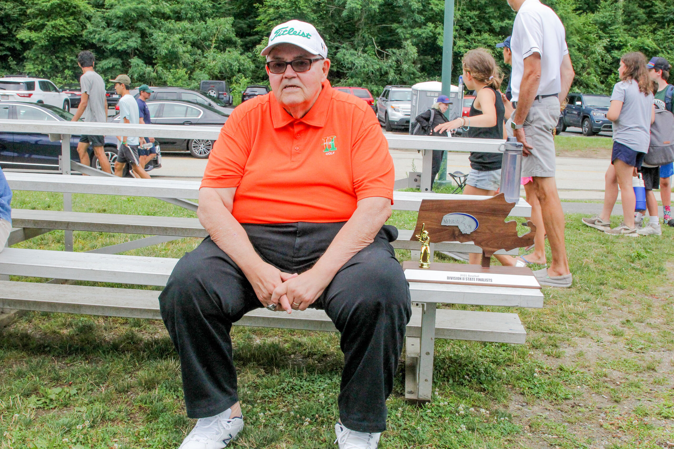 - Dick Bliss sits with the runner-up trophy after the HHS seniors presented it to him. PHOTO/JOHN CARDILLO