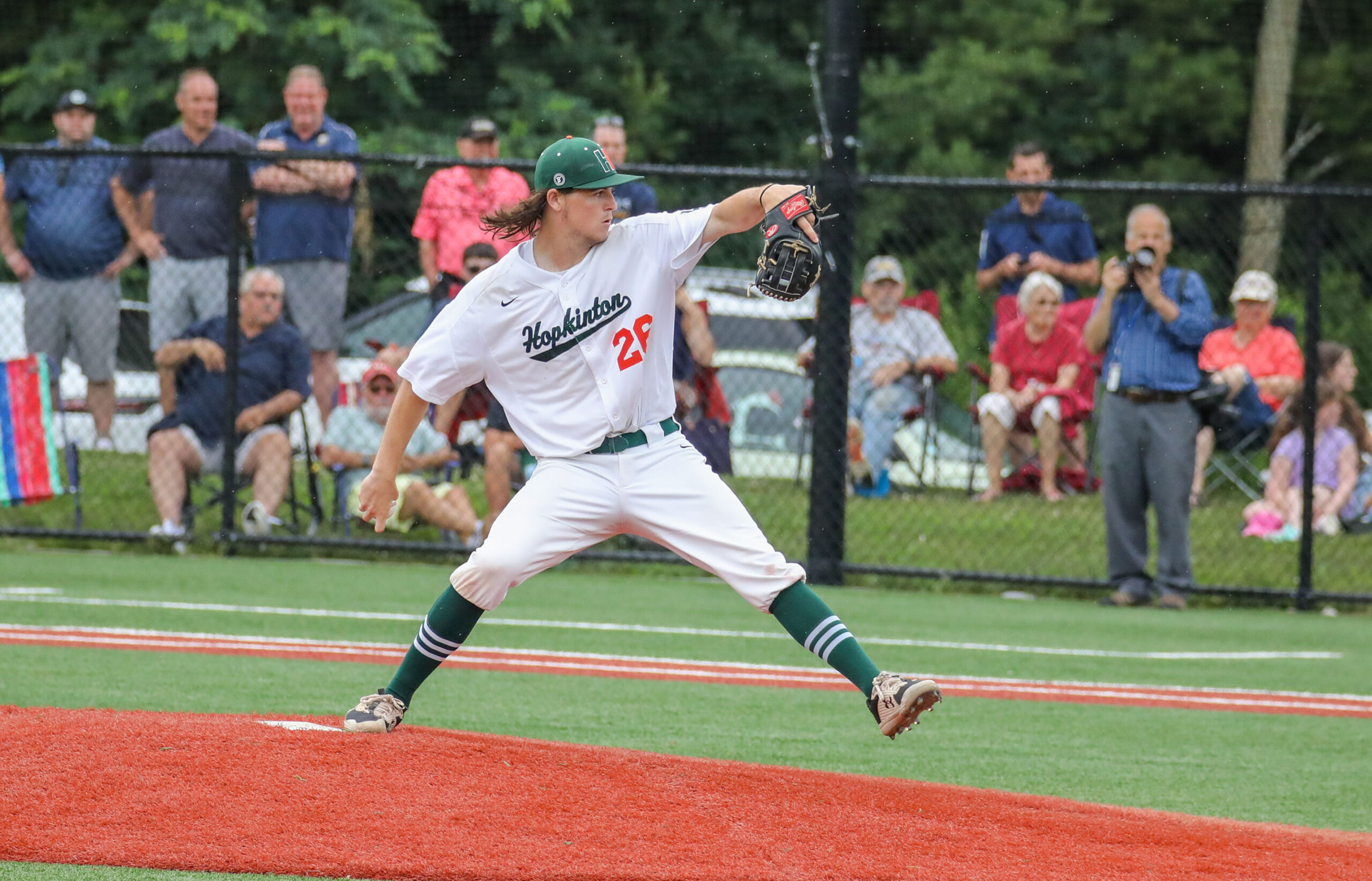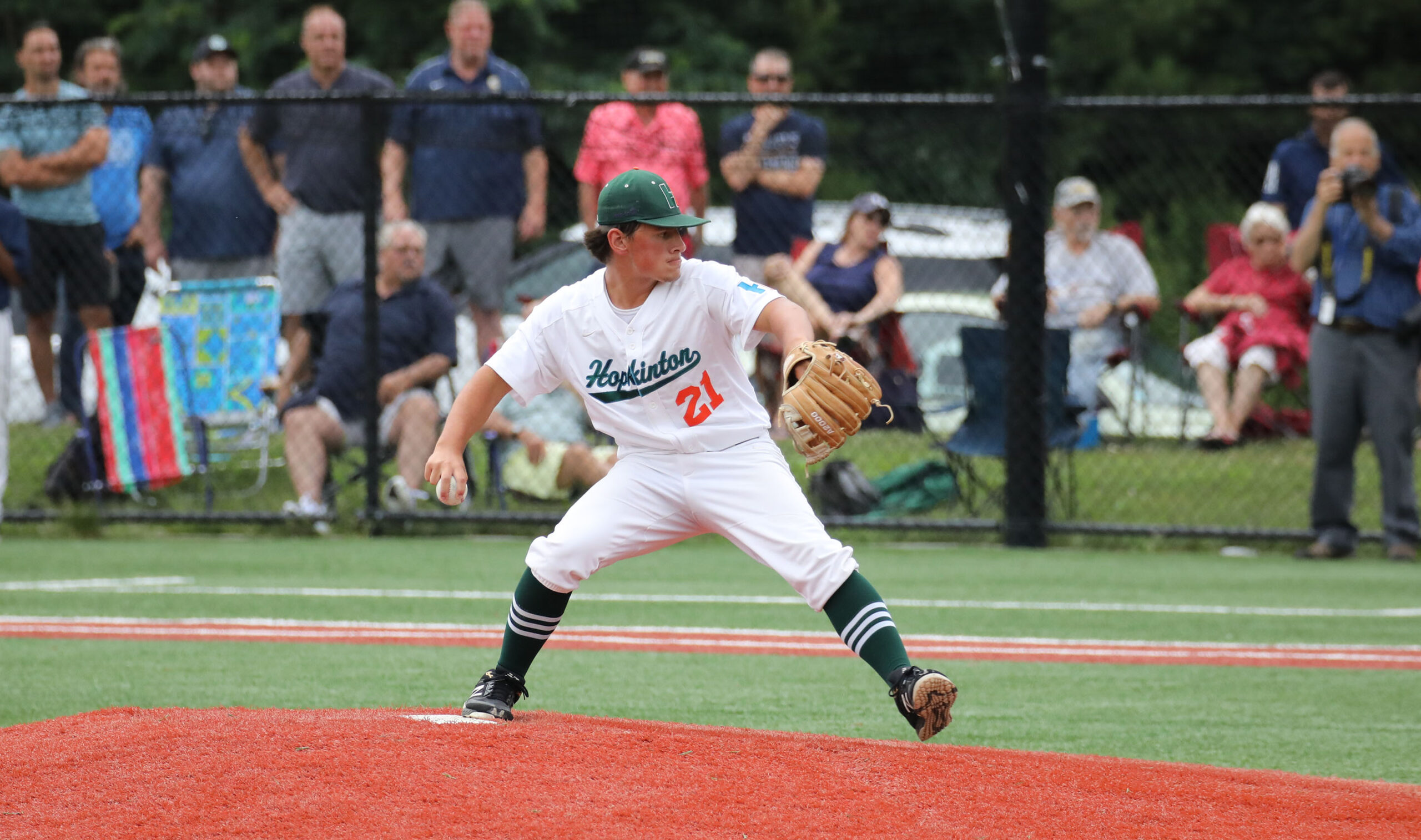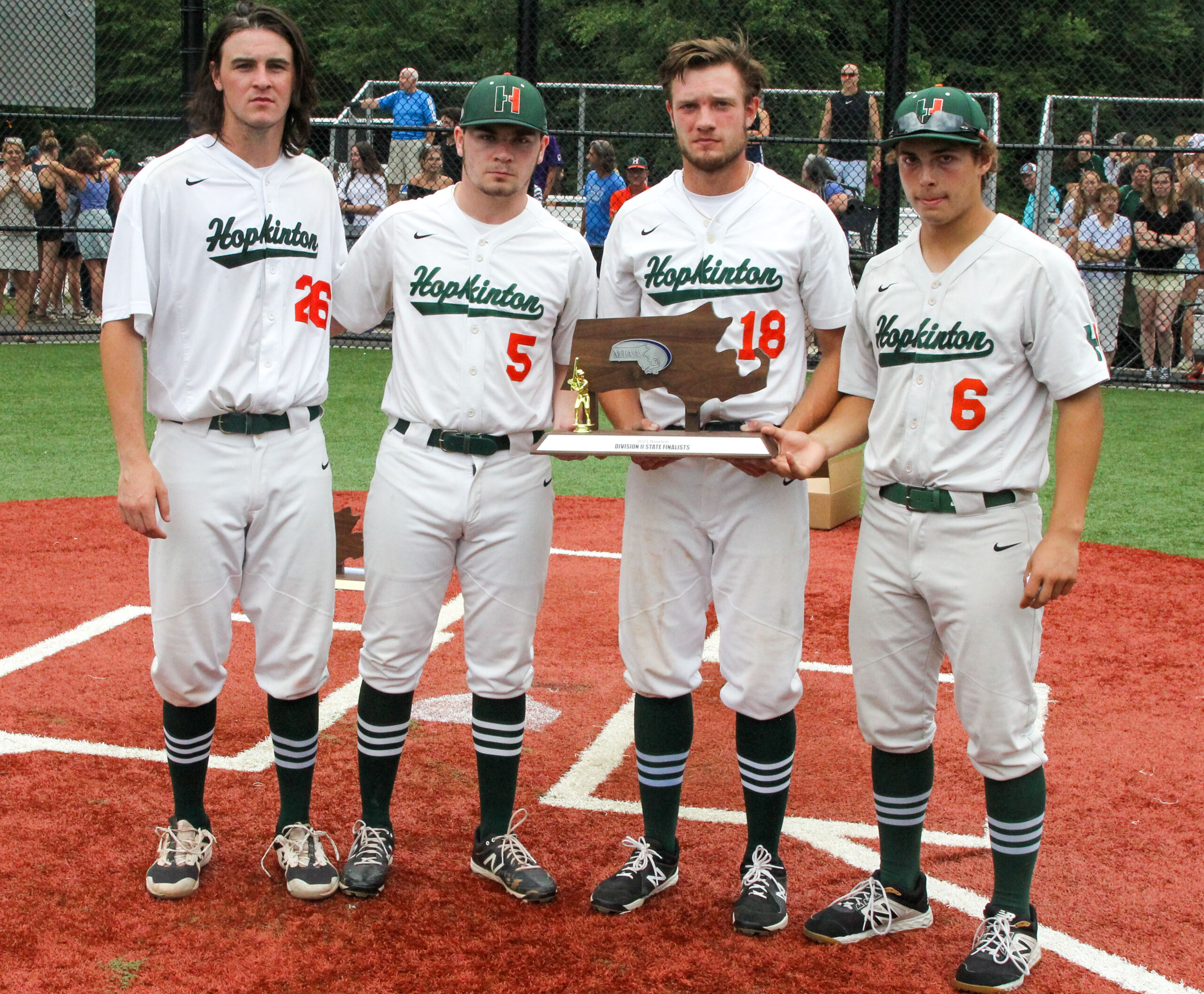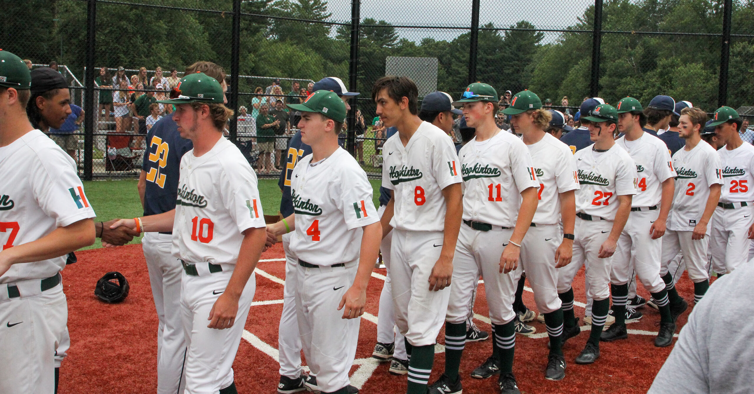 This time it was a much different kind of game. First off, due to changes caused by the pandemic, Hopkinton hosted the game, which normally is played at a neutral site. About 1,000 fans turned out to watch, lining both sides of the field and clumping around the outfield.