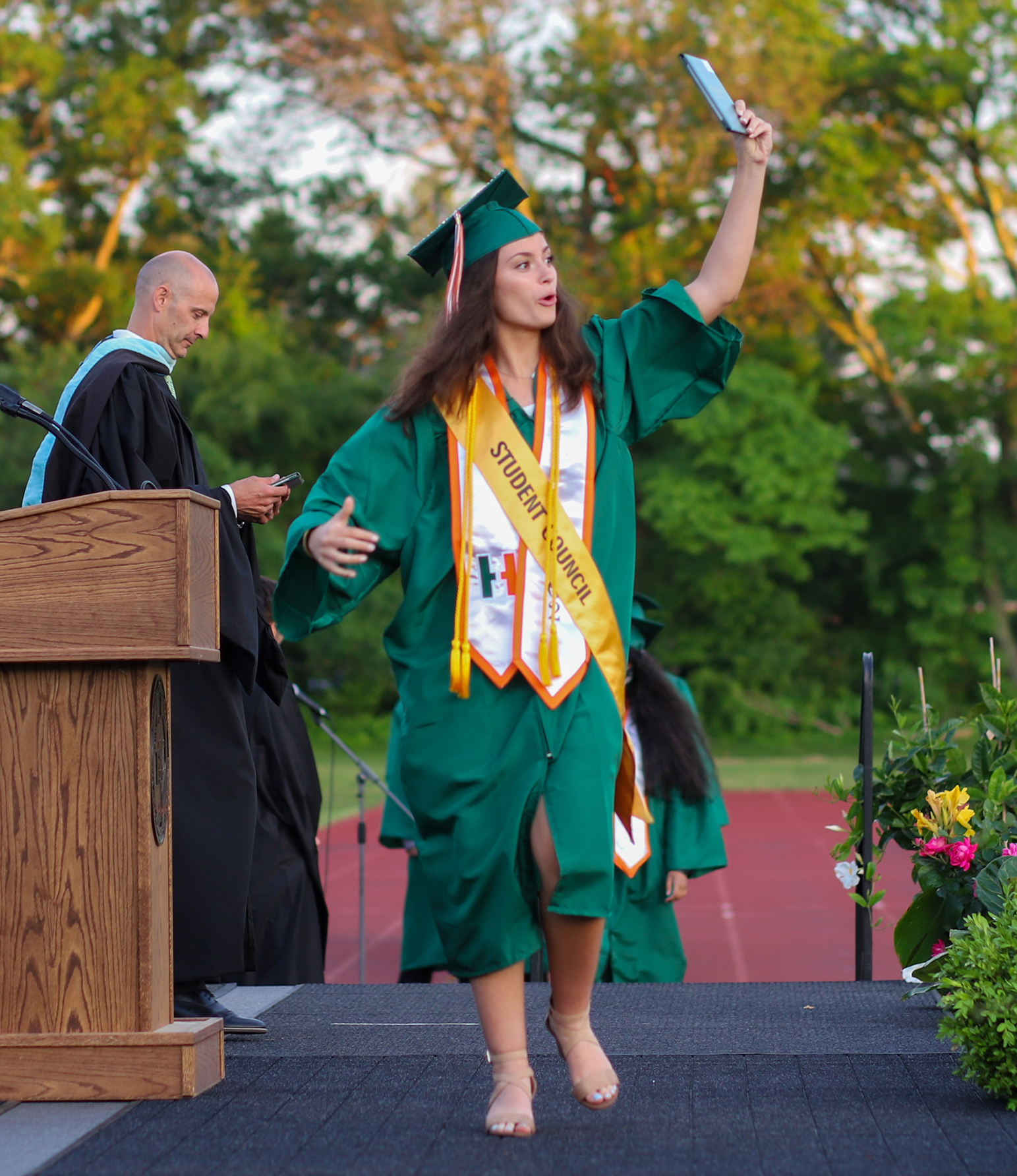 “We all know the last 15 months have been beyond difficult. We have dealt with loss, cancellations, adjustments, weather and many, many unexpected moments,” Bishop said. “However, with the help and support of so many, we are here tonight and we are incredibly thankful to be able to bring these seniors together one last time. And while it’s important and necessary to acknowledge the hard times we’ve all been through, tonight is about celebrating these graduates as they have earned and deserved an appropriate and joyous send-off.”