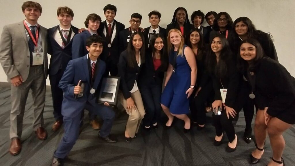 Several other HHS students qualified for the national competition. They are: Abhishek Sakthi Kannan, first place, economic research; Akarsh Doki, second, entrepreneurship, and third, computer programming concepts; Ambika Nambiar, first, administrative support research project; Armaan Kamra, second, administrative support research project; Armaan Kamra and Ambika Nambiar, first, presentation team; Aryaa Dixit, third, health research presentation; and Aryaa Dixit and Poorvi Tikoo, second, podcast production team.