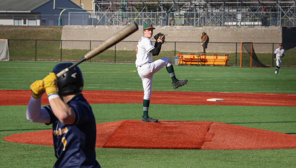 Hopkinton High School baseball player Nick Pedroli prepares to deliver a pitch during a game last week against Xaverian.