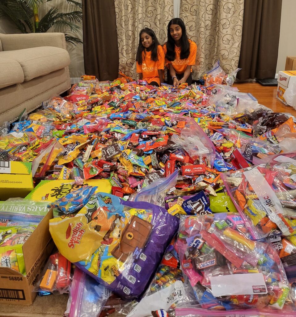 Aadya and Rishvi Nagamalla gathered 551 pounds of candy last month in partnership with Ekam USA for the Treats for Troops initiative. The candy was donated to the New Hampshire National Guard.
