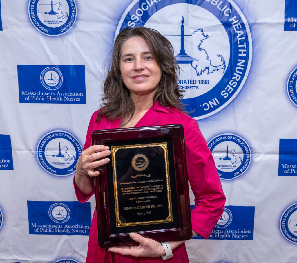 Hopkinton public health nurse Simone Carter recently was recognized for her work with two honors: election as the president-elect of the Massachusetts Association of Public Health Nurses, and the President’s Award from that same organization.