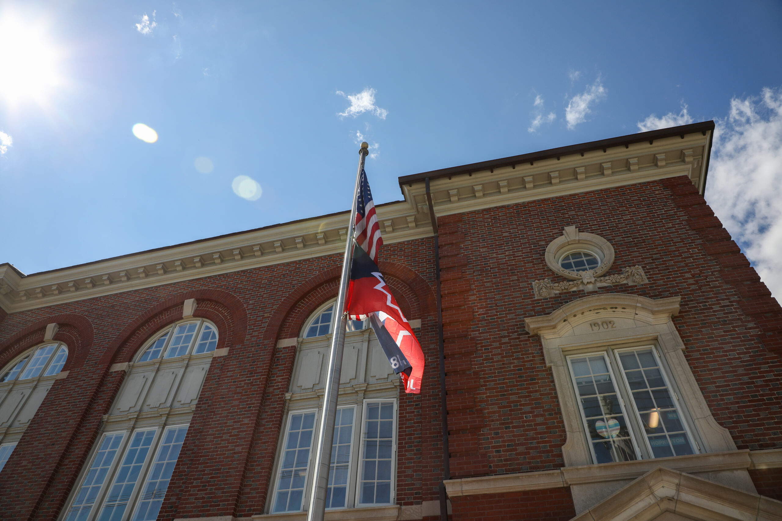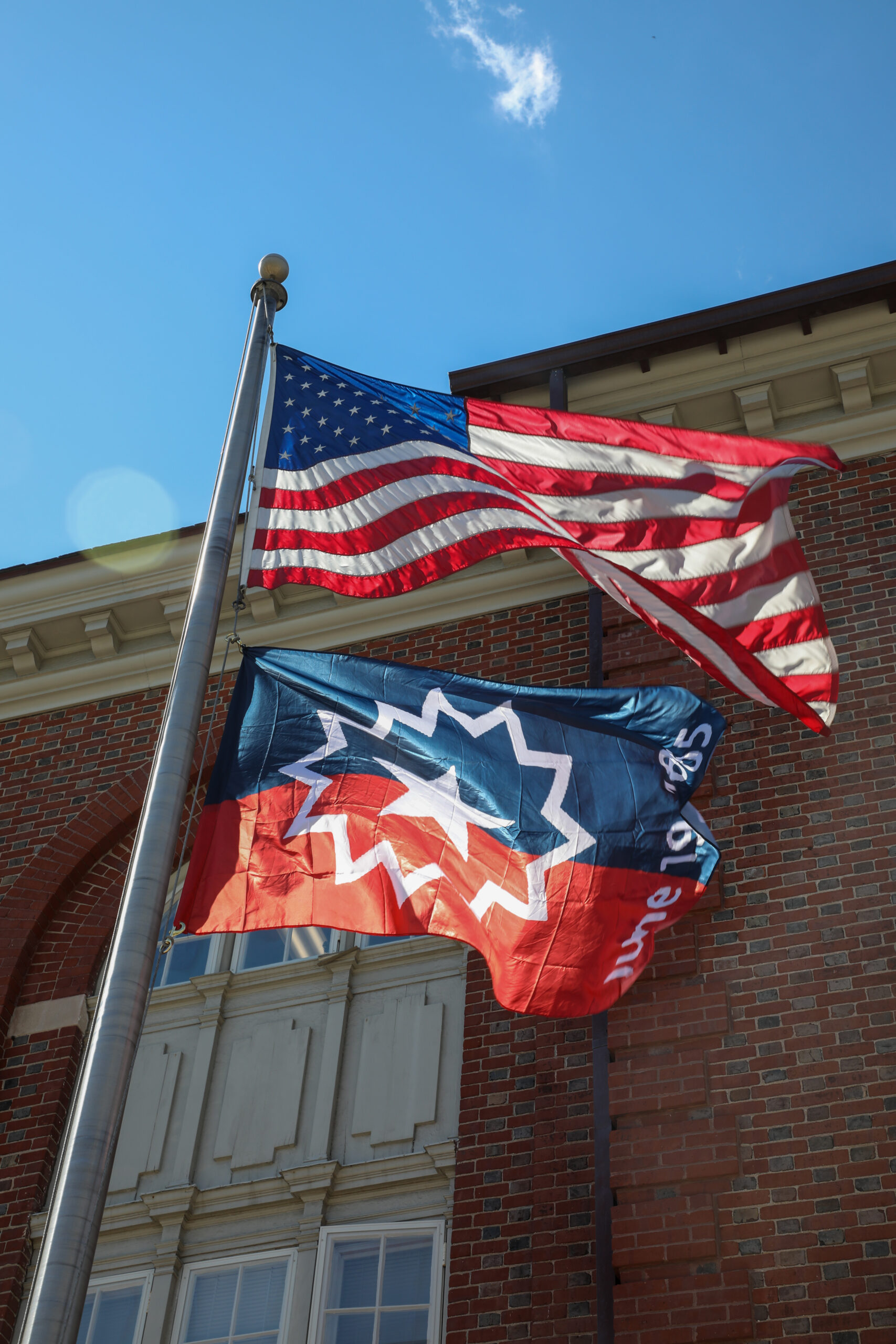 - The Juneteenth flag flies below the American flag at Town Hall. PHOTO/JOHN CARDILLO