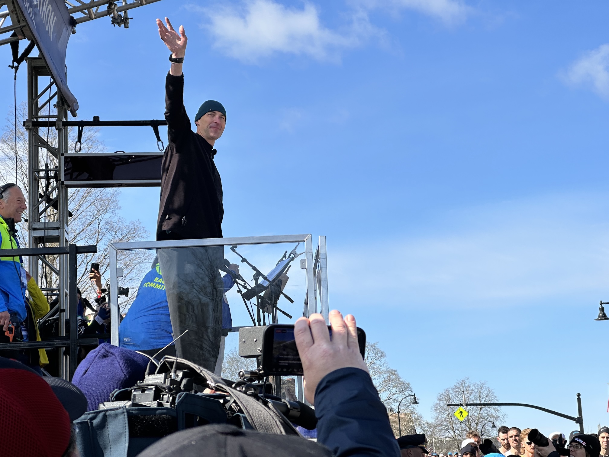 - Boston Bruins legend Zdeno Chara acknowledges the crowd before firing the pistol to start the professional men’s race. Chara then ran the race himself. PHOTO/JERRY SPAR