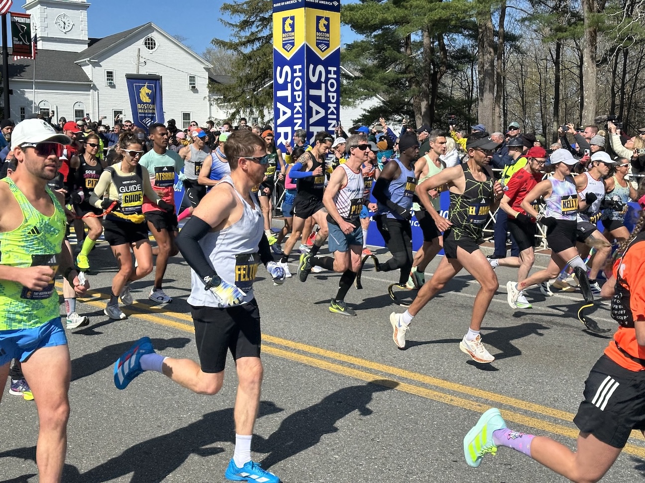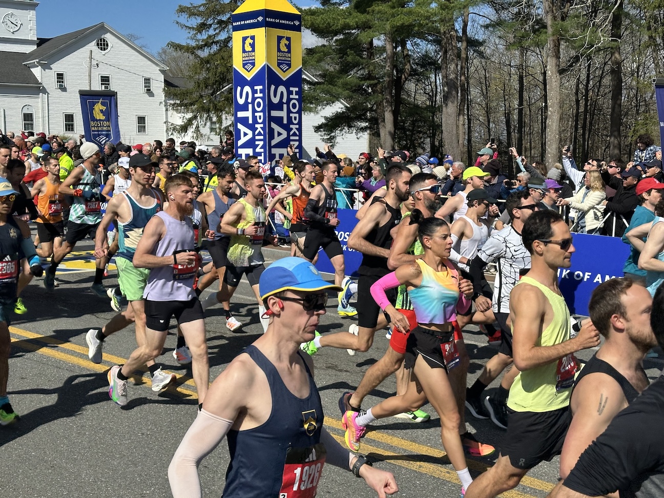 The 130th Boston Marathon got underway in Hopkinton on a cold but clear Monday morning. Some 30,000 participants began their trek to Boston on Main Street, across from the Town Common.
