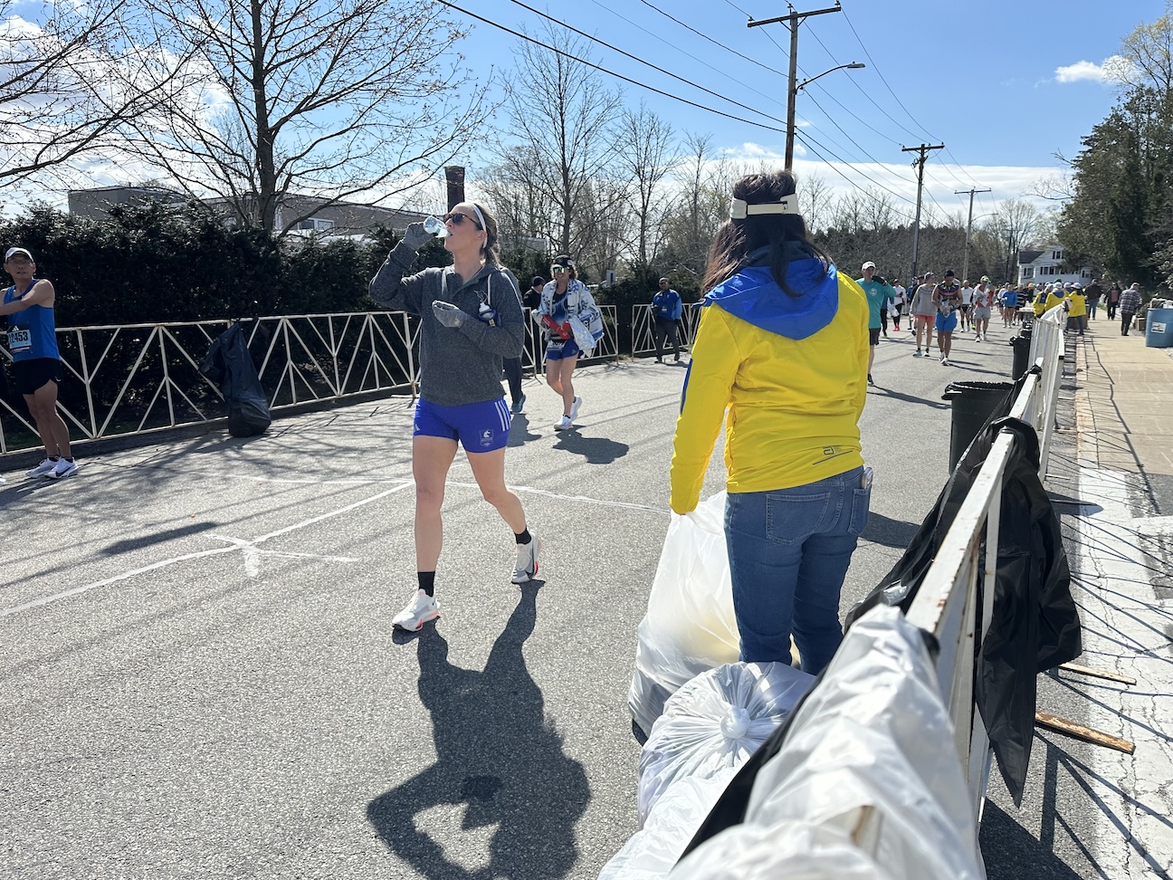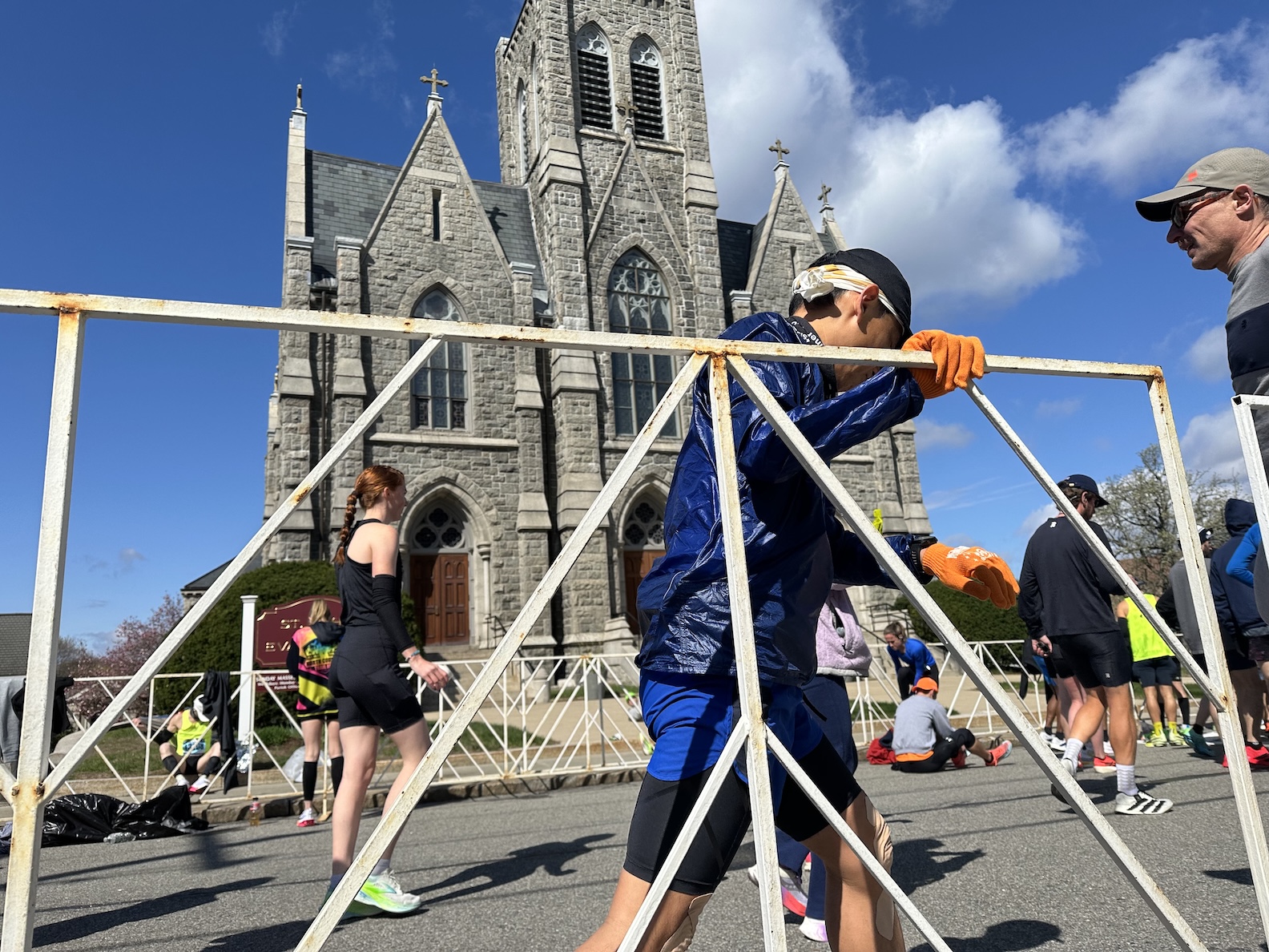 - A volunteer collects discarded clothing from runners heading down Church Street to the start line. PHOTO/JERRY SPAR