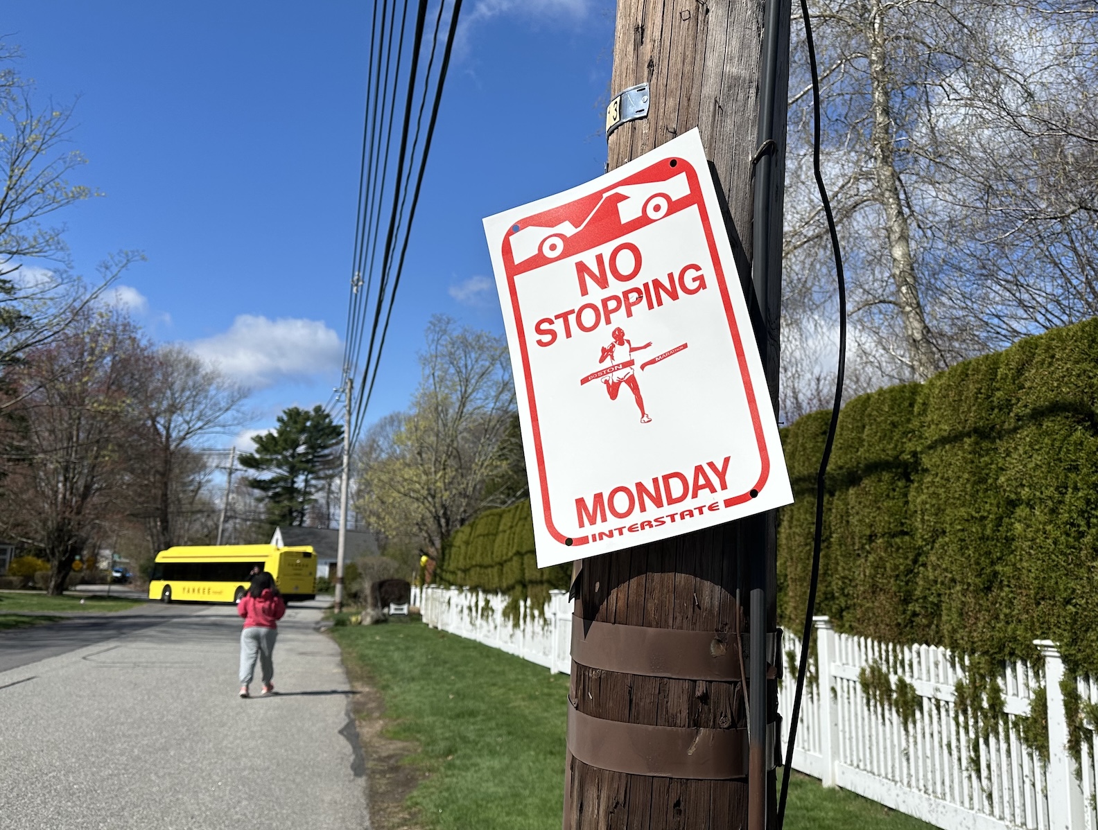 - A sign cautions that there is no parking on streets near the start line and athletes village. PHOTO/JERRY SPAR