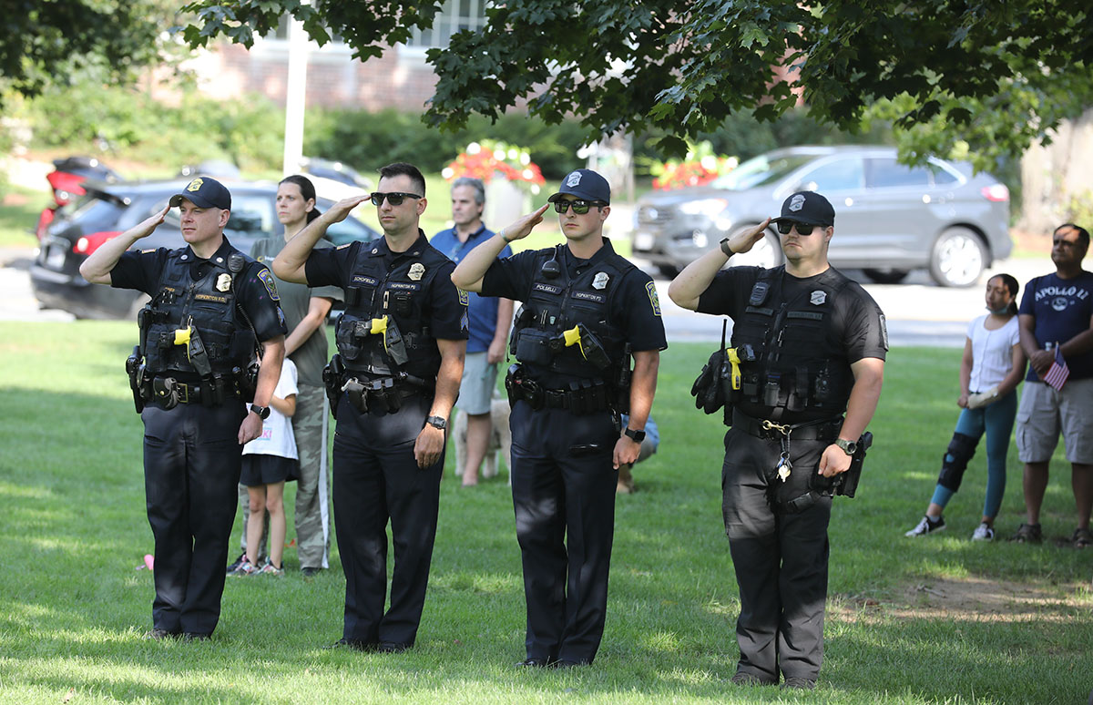 - Members of the Hopkinton Police Department salute. PHOTO/JOHN CARDILLO
