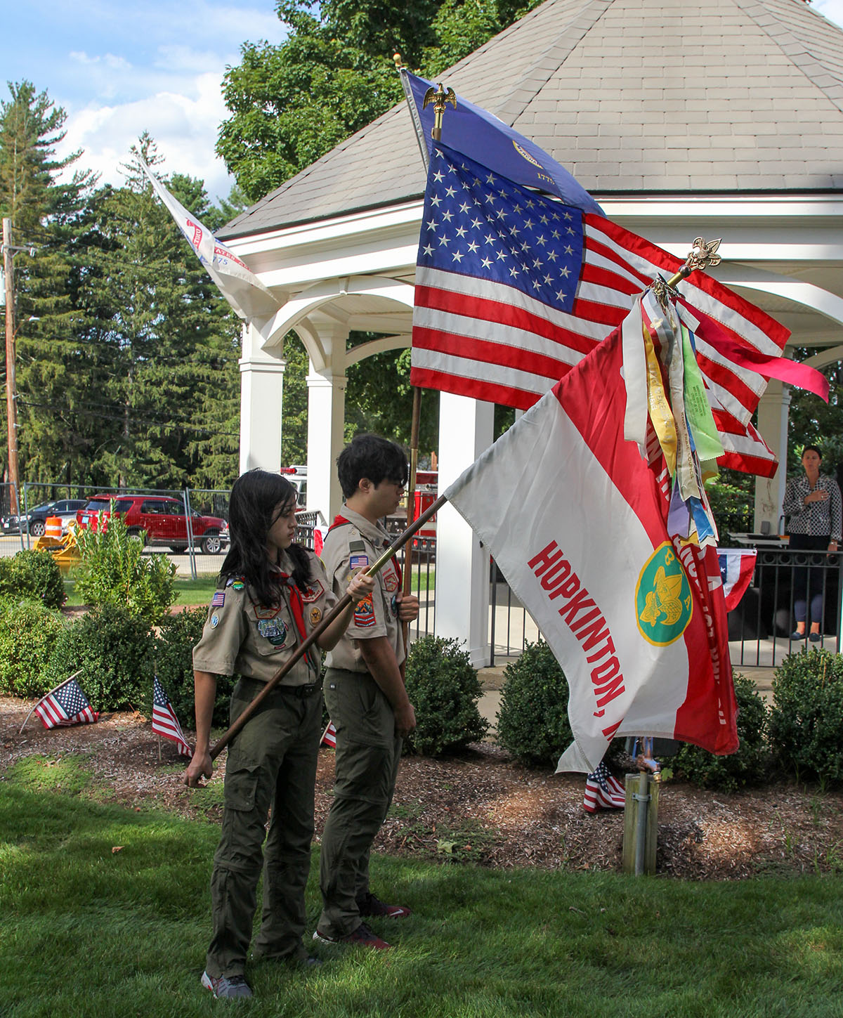 - Scouts displayed their town flag and an American flag at a 9/11 service in 2022. PHOTO/JOHN CARDILLO