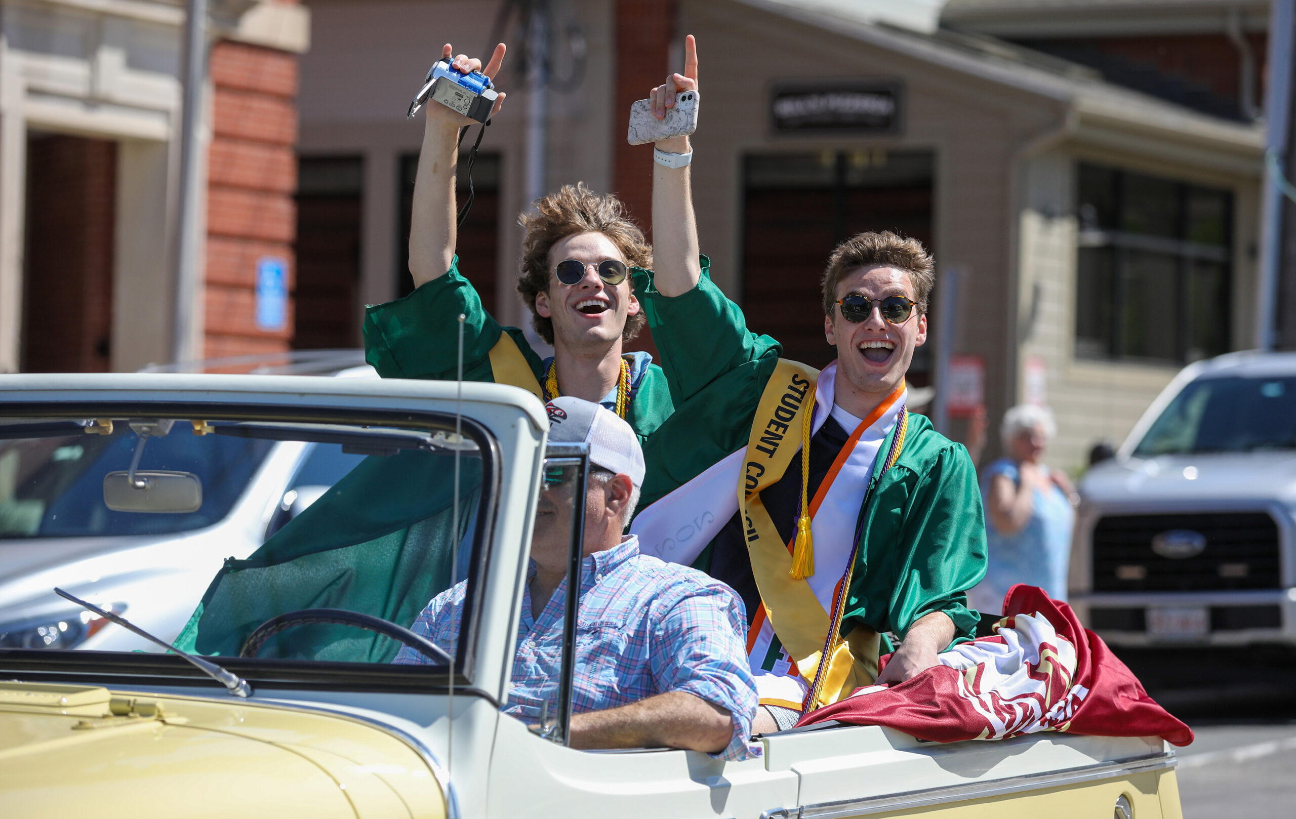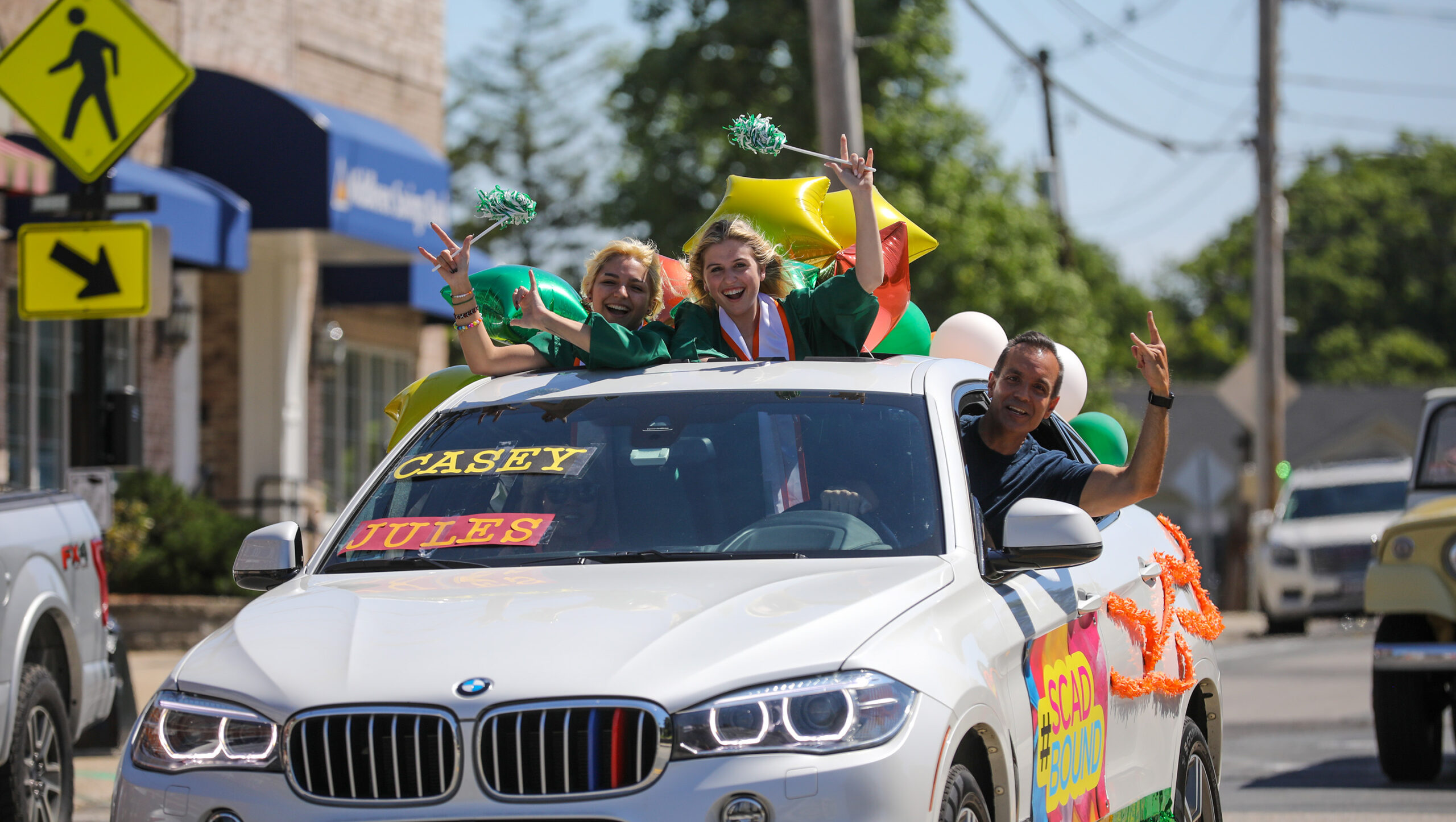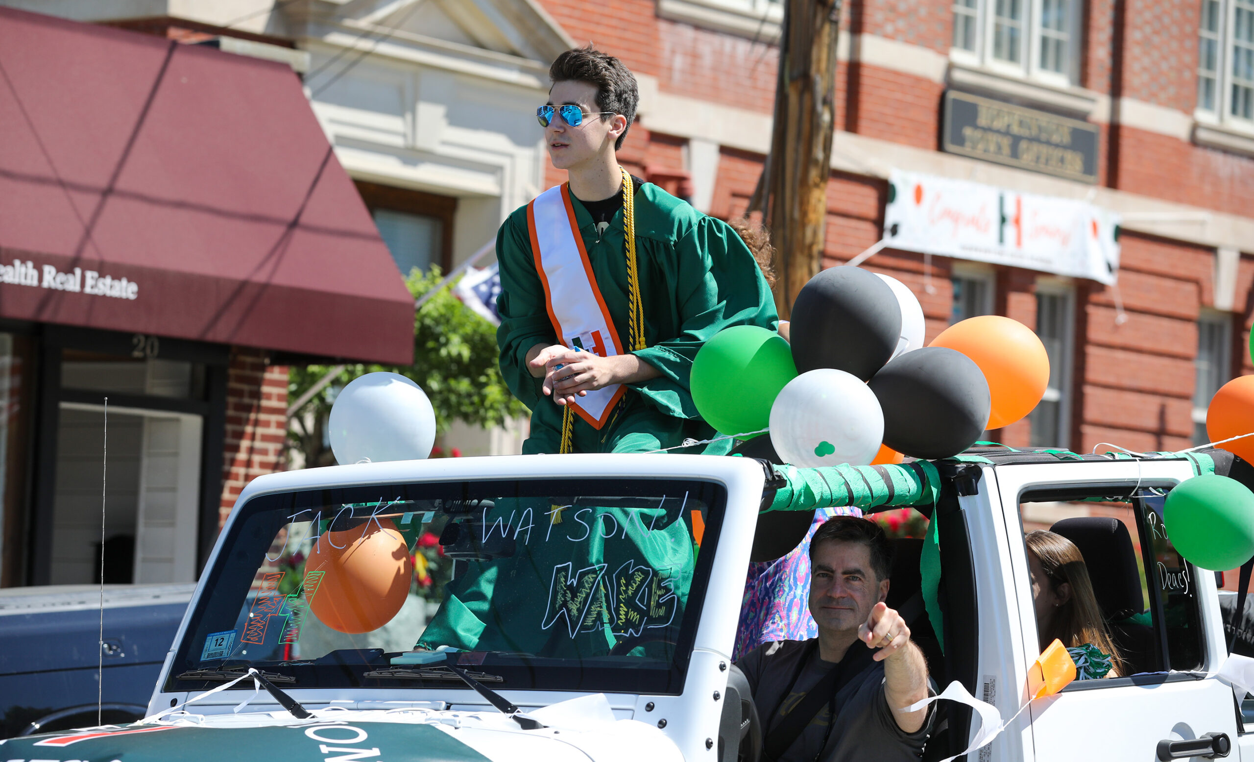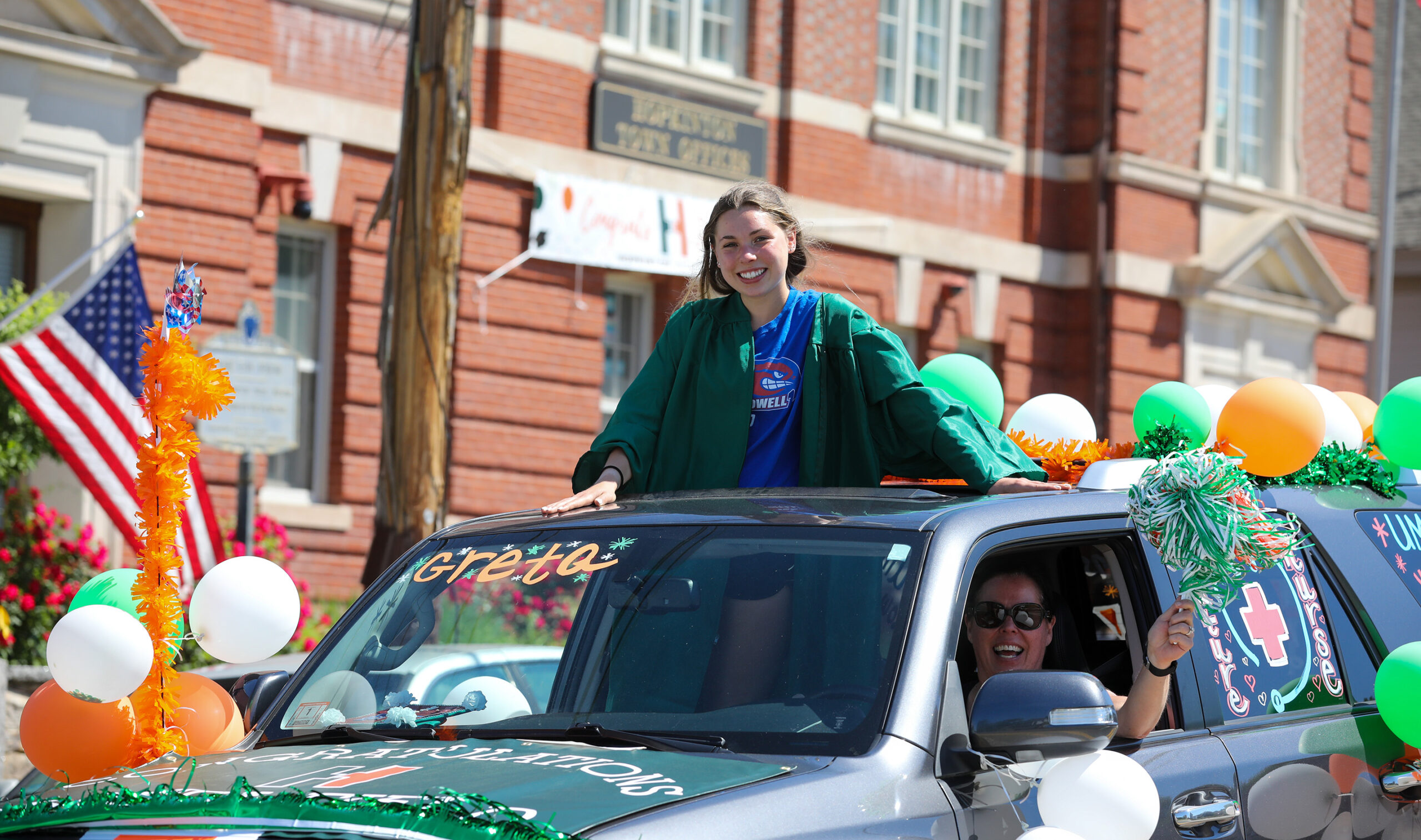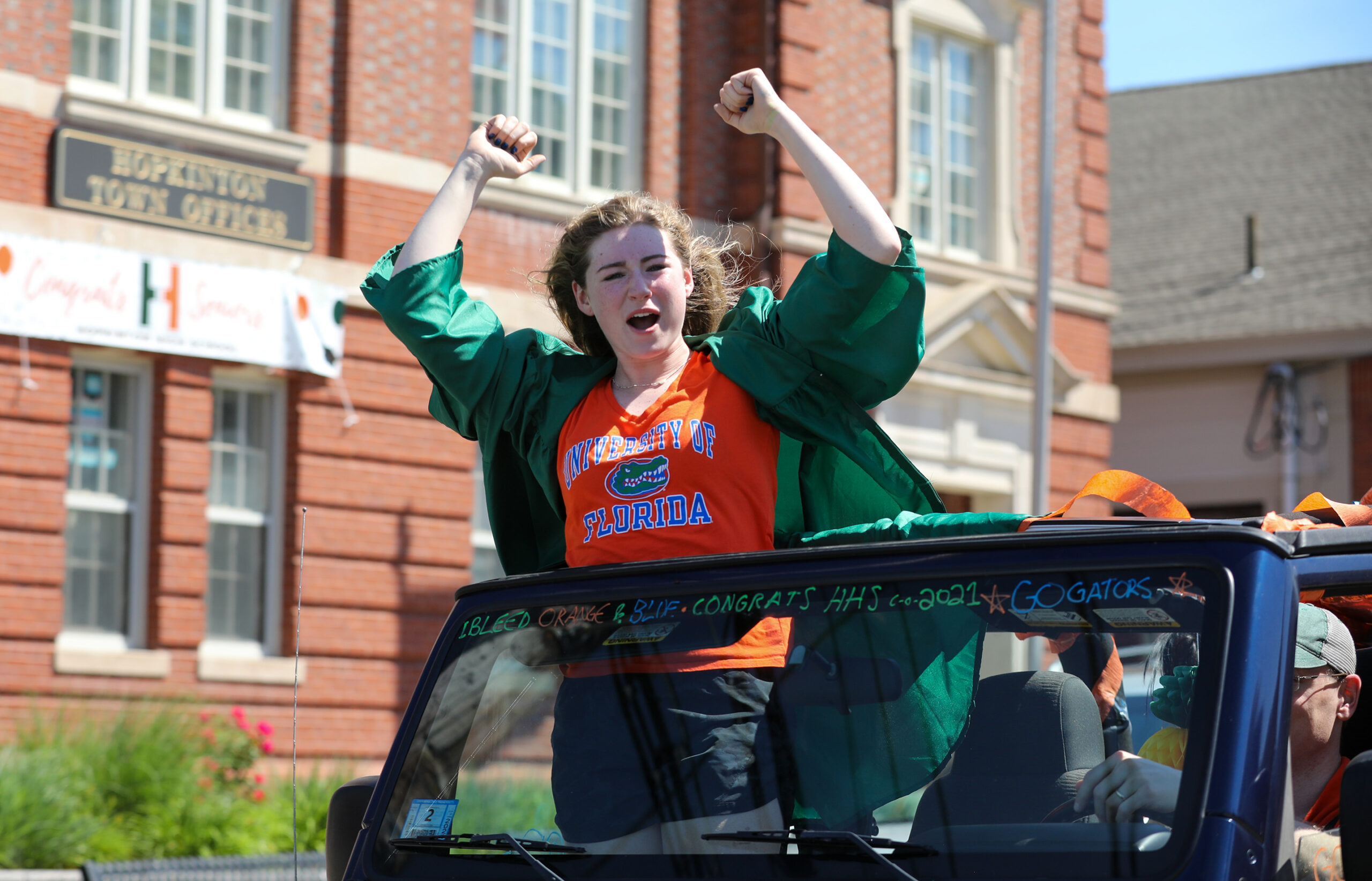 - Cadyn Boyce drives with her family past Town Hall. PHOTO/JOHN CARDILLO