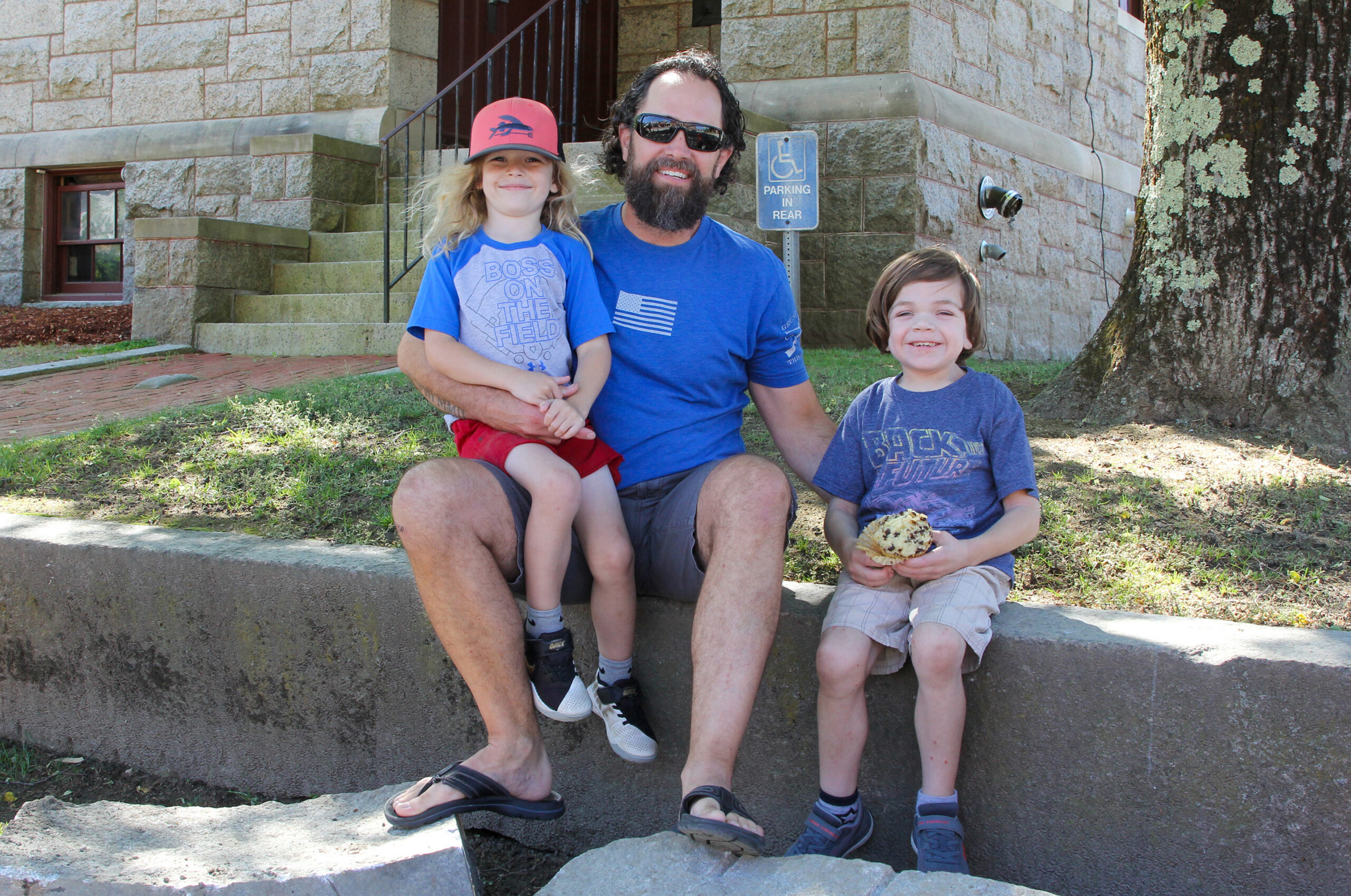 - Darren Hohn and sons Jacob (left) and Christopher wait in front of the library to cheer for graduate Parker Hohn. PHOTO/JOHN CARDILLO