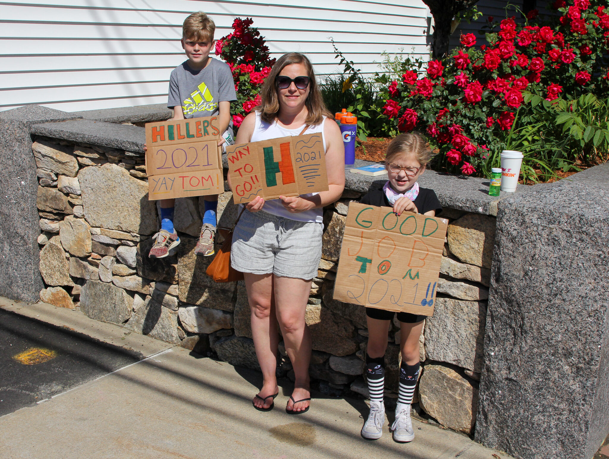 - Amanda Spinelli is joined by son Lucca and daughter Enza as they wait on Main Street to cheer on a friend. PHOTO/JOHN CARDILLO