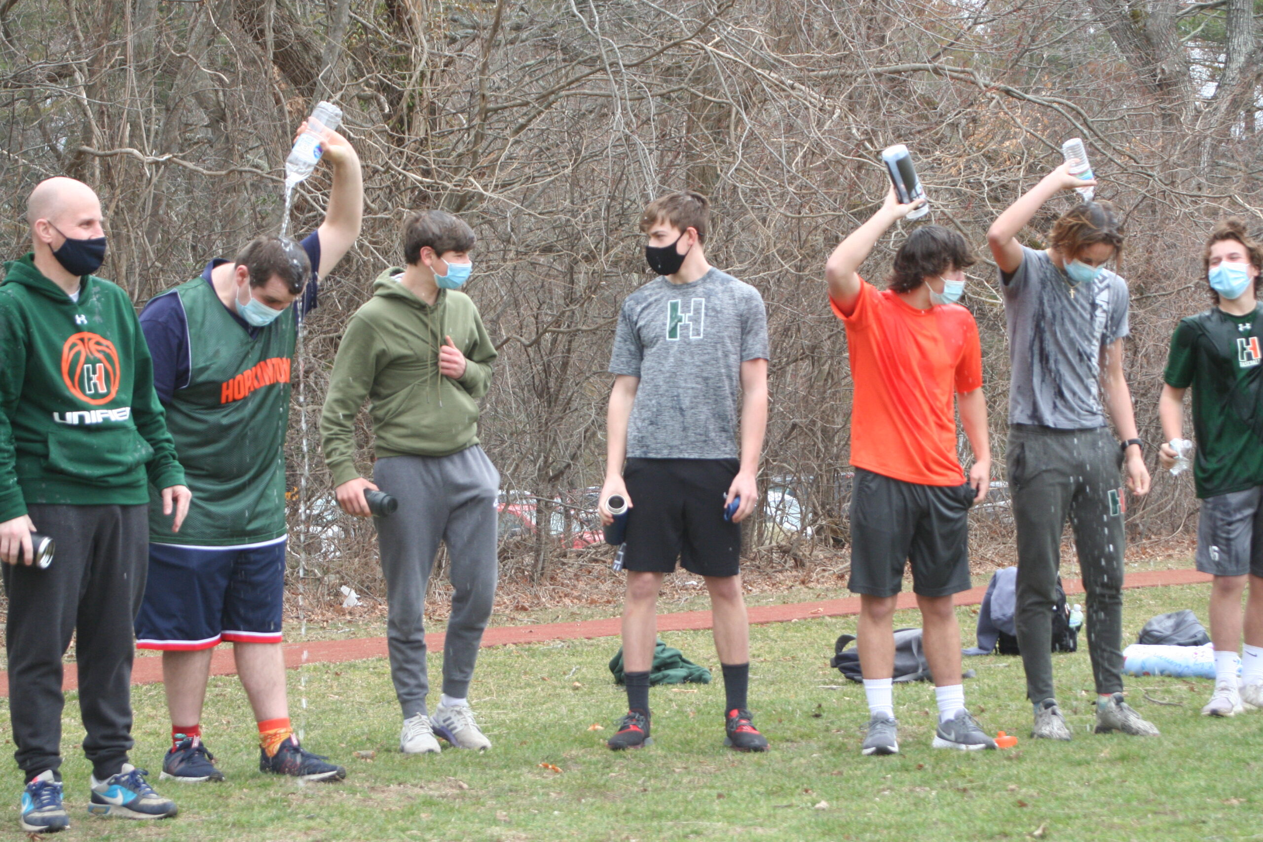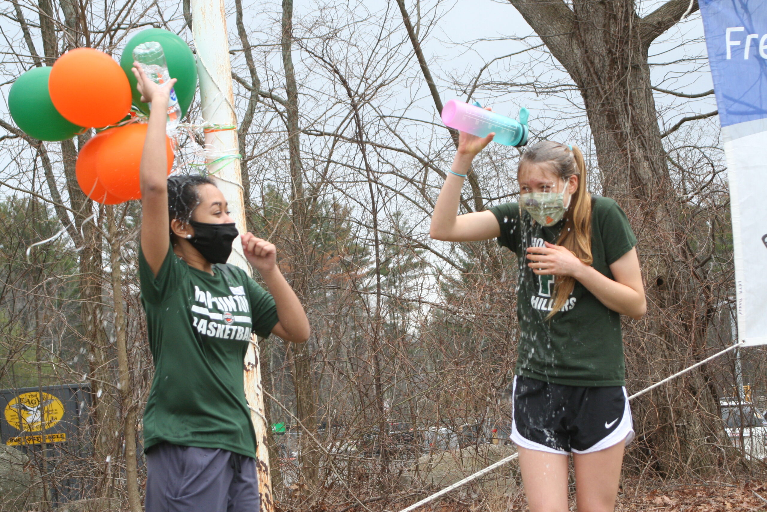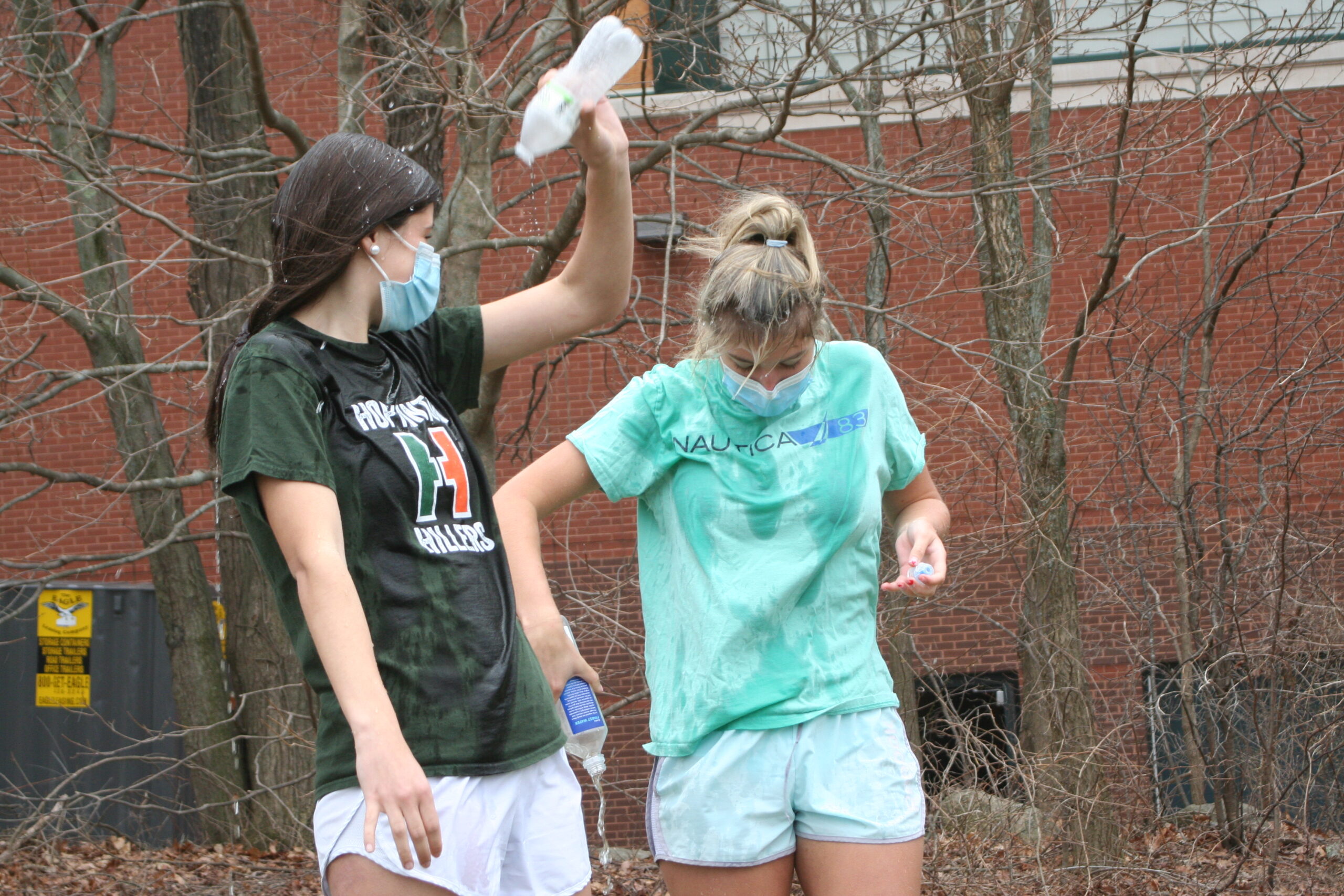 - HHS juniors Bianca Pal (left) and Lisa Levandosky dump water over their heads. PHOTO/JERRY SPAR