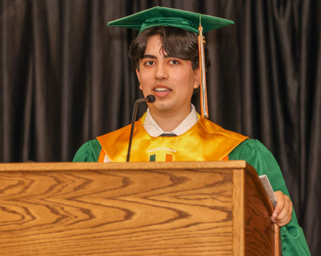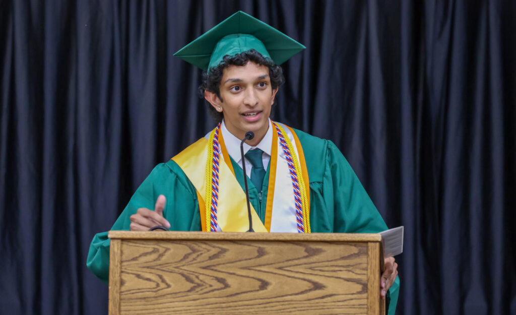 Valedictorian Dylan Striek delivers a speech. PHOTO/JOHN CARDILLO