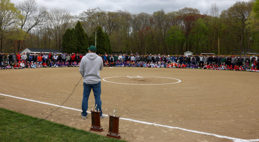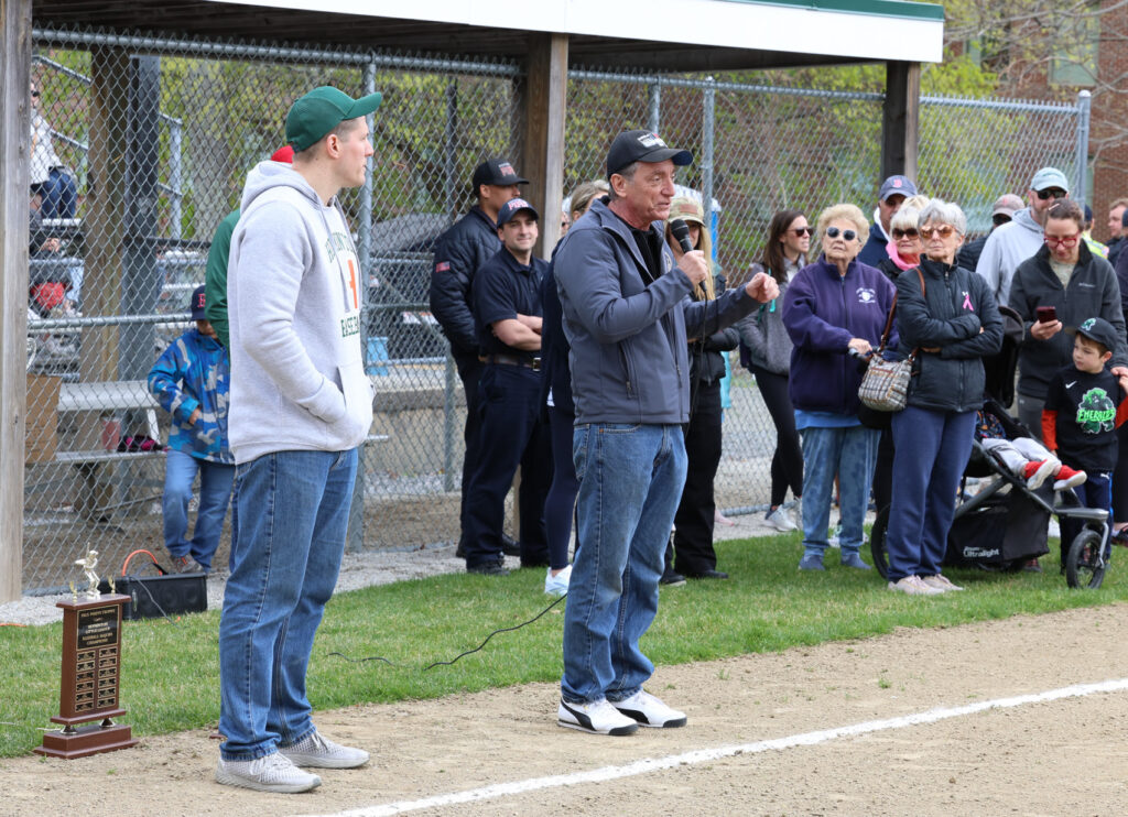 Hopkinton Little League president Gabe Recos addresses the crowd. PHOTO/JOHN CARDILLO