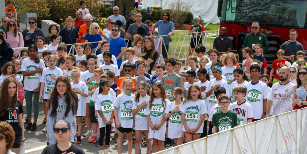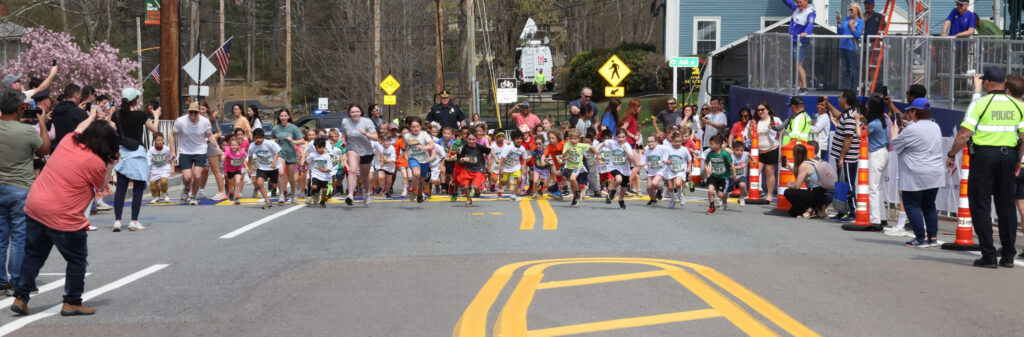 The Hopkinton Parks & Recreation Department hosted its Celebrate the Start Line event on the Town Common on Saturday, ahead of the 129th Boston Marathon. As part of the festivities, the Hopkinton Marathon Committee sponsored a 100-yard dash for children at the Boston Marathon start line.