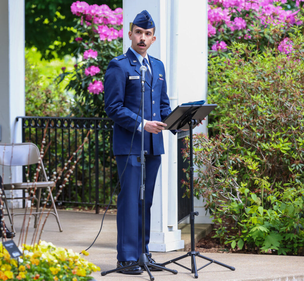Second Lt. Brandon Sarrasin of the United States Air Force gives the keynote address. PHOTO/JOHN CARDILLO